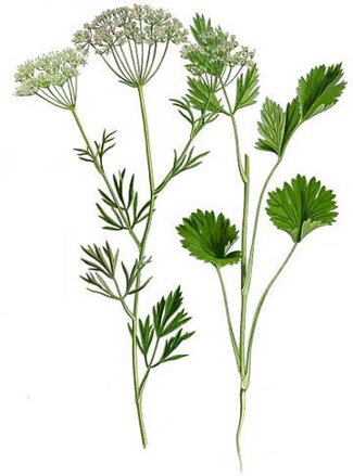 Je to jednoročná bylina pochádzajúca z oblasti Stredomoria. Vytvára priamu, rozkonárenú stonku s dolnými listami srdcovitými, prostrednými trojpočetnými a hornými perovito strihanými. Drobné biele kvety sú usporiadané v zložených okolíkoch. Plod je dvojnažka. Celá rastlina obsahuje aromatické silice. Patrí k najstarším liečivým rastlinám na svete. Kedysi sa používal ako protijed a omladzovací prostriedok.
